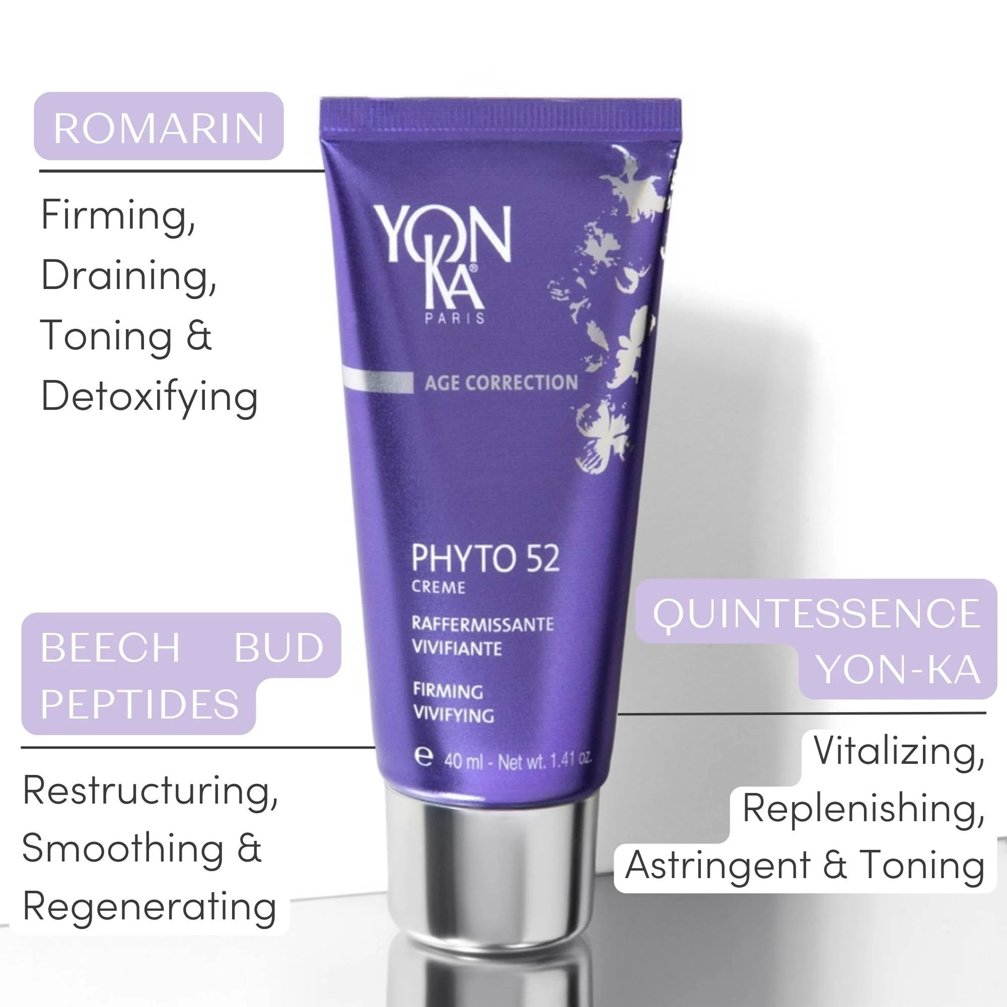 Formulated with a potent concentration of rosemary extracts and carefully selected plant actives, Phyto 52 penetrates deep into the skin to stimulate cellular renewal and enhance natural repair processes. The fast-absorbing formula delivers intensive nourishment without heaviness, making it perfect for nightly use.