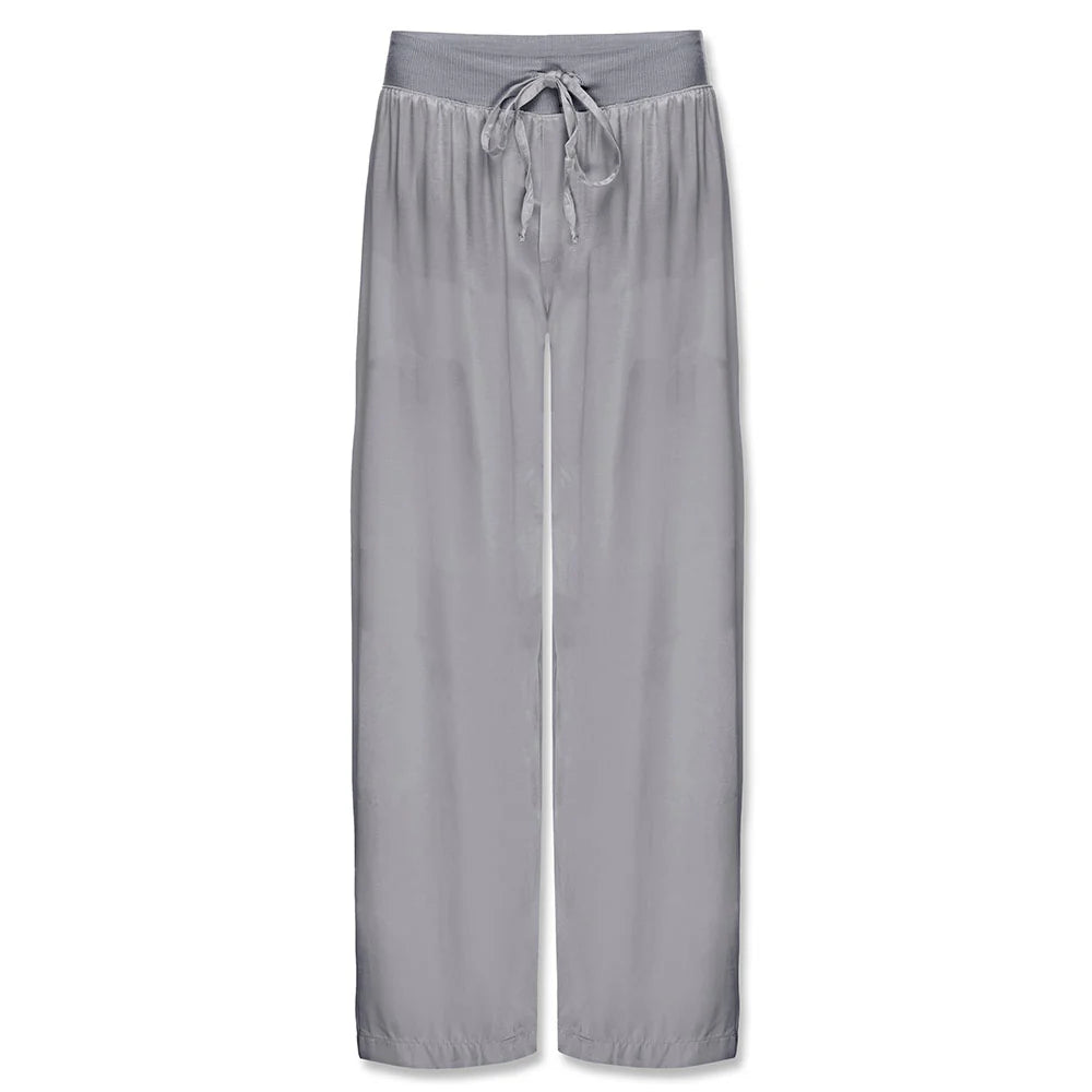 Satin Ankle Pant With Rib Waistband And Adjustable Drawstring