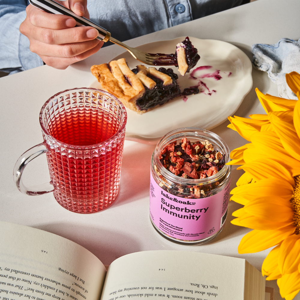 Sip to your health with this gorgeous berry blend that is packed with nature's favourite flu-fighters: elderberry, goji berries, echinacea, and ginger. The bold berry flavour makes it an addictive all-day sipper, with a hint of tingly ginger for that instant feel-good boost. Insanely delicious, hot or iced.