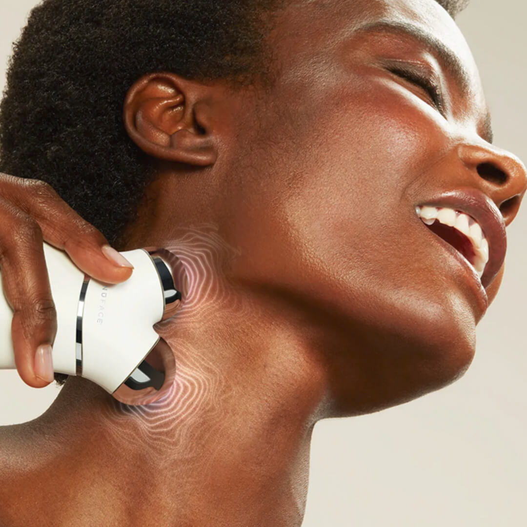 The Trinity+ Pro uses safe, low-level electrical currents that mirror your body's natural bioelectricity. These gentle pulses stimulate facial muscles, encouraging them to appear more lifted and toned while improving circulation for a healthy, radiant glow.