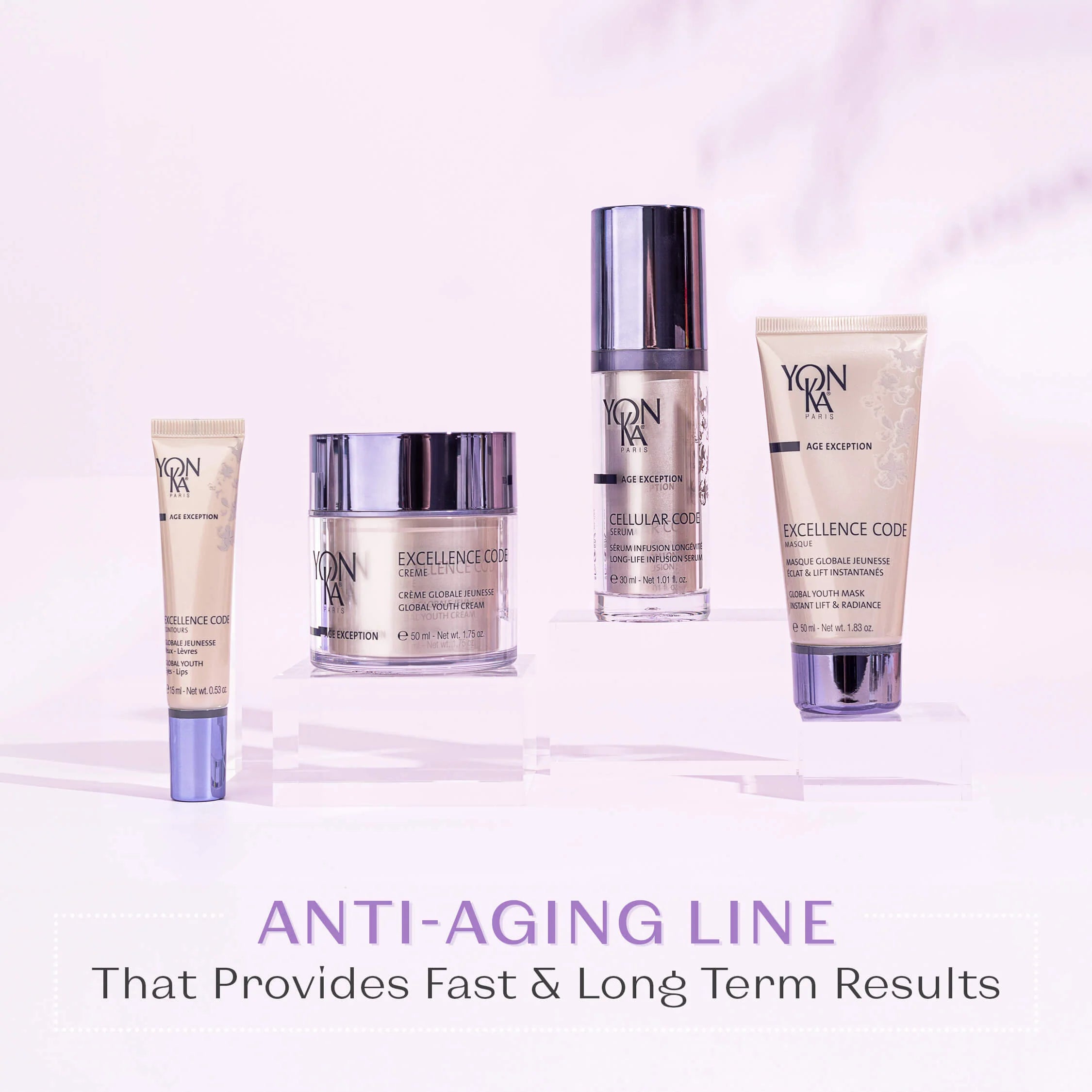 Experience the pinnacle of Yonka's anti-aging expertise with our exclusive Excellence Code Bundle, featuring three luxurious products that work synergistically to combat visible signs of aging and restore youthful vitality to your skin.